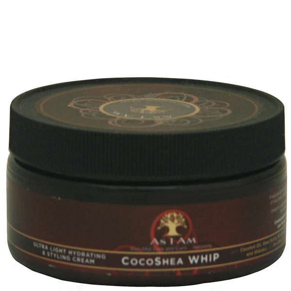 As I Am CocoShea Whip Ultra Light Hydrating & Styling Cream with Coconut Oil, Shea Butter, Extracts of Amla and Shikakal, and Rice Bran Oil.