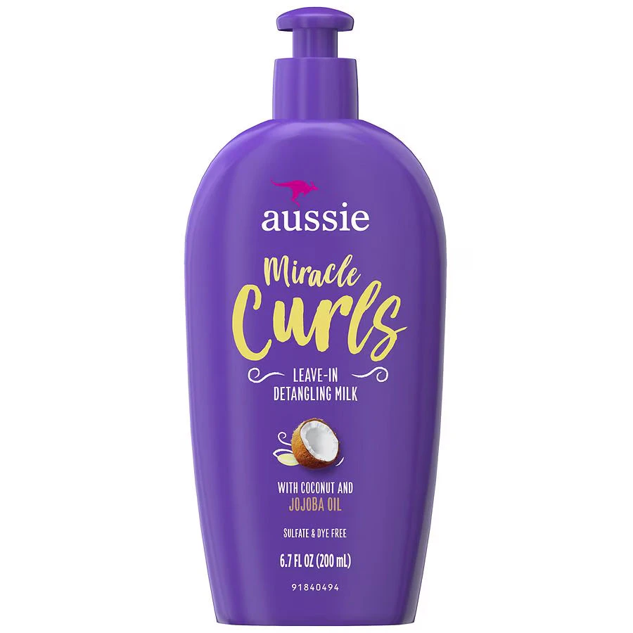 Aussie Miracle Curls Leave-In Detangling Milk with Coconut and Jojoba Oil.