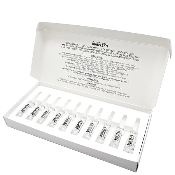 For dyeing: in a 1:1 ratio, mix agent 1 and agent 2 (BONPLEX DEVELOPER). Add one or two BONPLEX-i ampoules to the mixture.