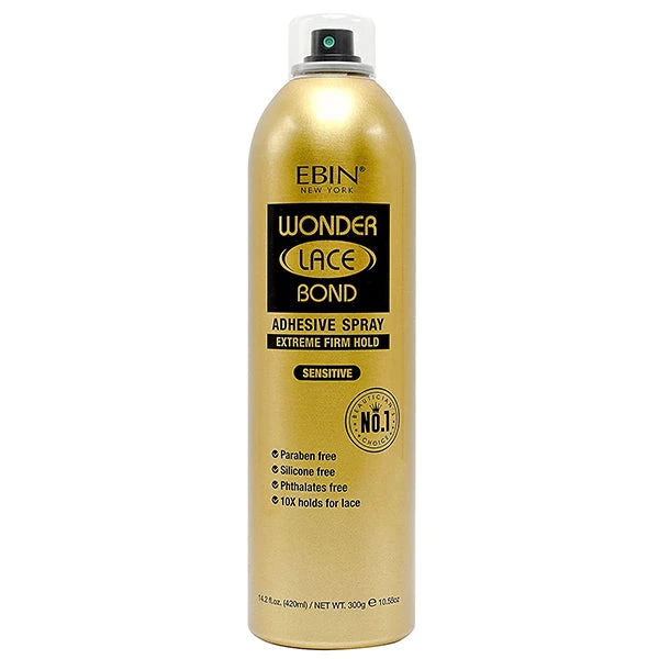 EBIN’s Wonder Lace bond Adhesive Spray Sensitive is formulated for anyone with sensitive skin. Our carefully created formula i intended to give a secure hold without irritation, Gentle enough for everyday wear. Weight stated on the spray bottle is the total weight which includes the gas, product and the bottle. Net WT. is 65 % of the total weight which is the weight of the product inside the bottle, because the maximum amount of VOC (Volatile Organic compound) to safely fill up the bottle is 65% of the total weight. To clarify, the cans are not filled to maximum capacity for your safety and the safety of others.