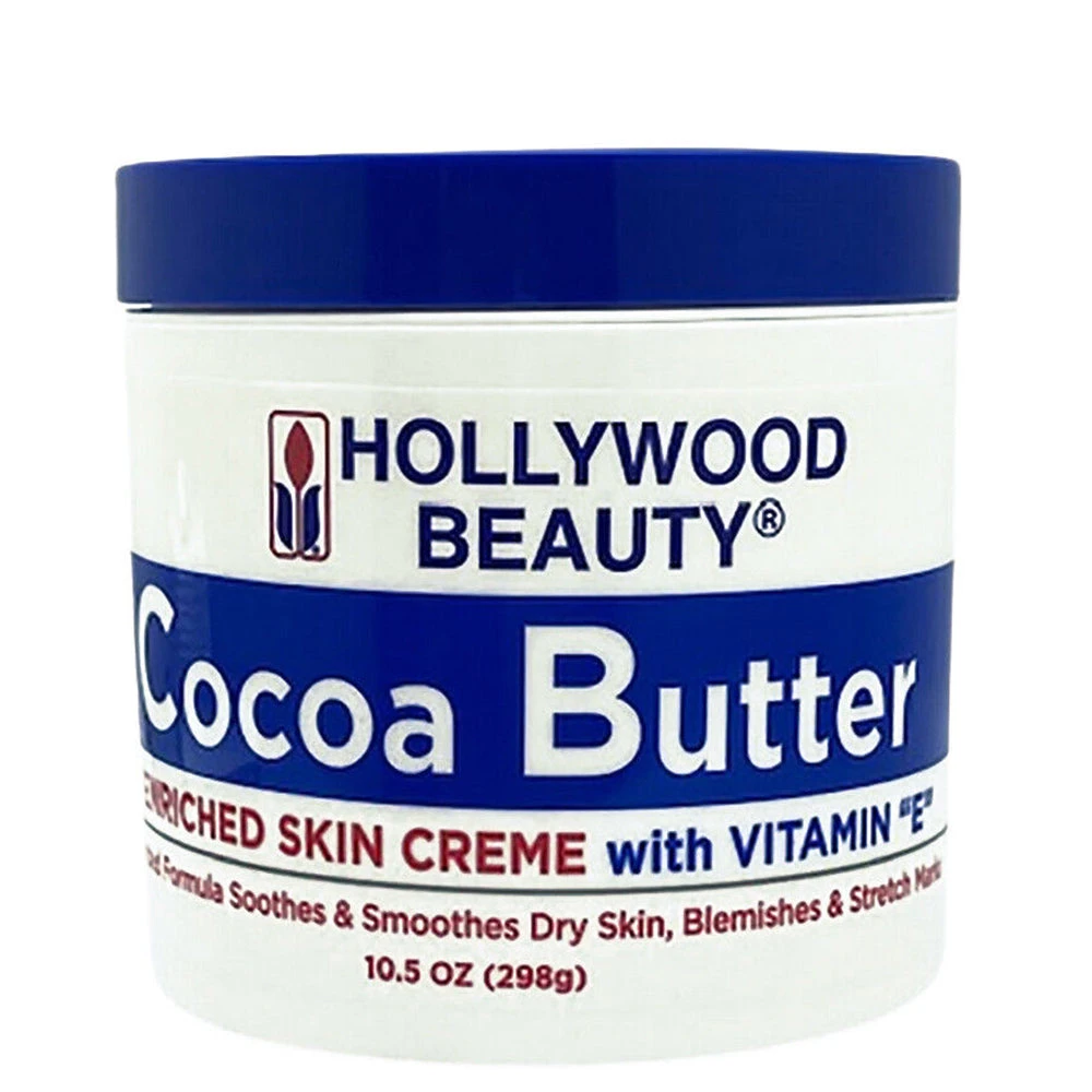 Hollywood Beauty Cocoa Butter Enriched Skin Creme with Vitamin E. Blended formula soothes & smoothes dry skin, blemishes & stretch marks. Use during and after pregnancy.