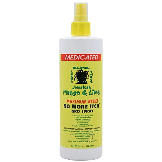 Jamaican Mango & Lime Maximum Relief Mentholated No More Itch Gro Spray is a medicated blend of natural botanical extracts and minerals that heal excessive scalp irritation while preventing dandruff and dry scalp.