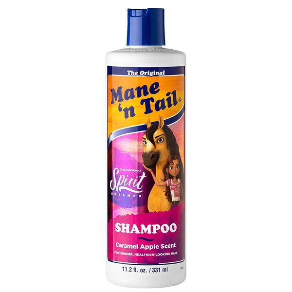 Mane ?n Tail?s Spirit Untamed Caramel Apple Scented Shampoo is the only shampoo you?ll need for bath time. Comes in 11.2oz size. Made in the USA by a family-owned company, Straight Arrow Products, Inc. your family can rest assured that this product is made with the finest ingredients. Discover the Spirit of Great Hair with this great lathering, gentle cleansing shampoo that will transform your hair into soft, silky, clean flowing hair.