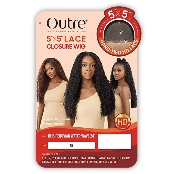 Outre 100% Human Hair Blend 5×5 HD Lace Closure Wig – HHB PERUVIAN WATER WAVE 24