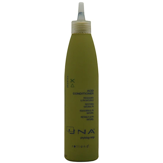 Rolland UNA Acid Conditioner is PH balancing conditioner, neutralizes alkalinity after chemical services, safeguards against color fading and increases shine. pH 3.9 – 4.2